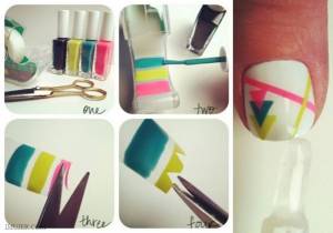 1. Pintamos trozos de la cinta de diferentes colores y esperamos a que seque.